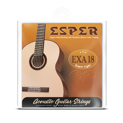 SENAR GITAR AKUSTIK ESPER EXA-18 Senar gitar akustik ESPER yang presisi diproduksi dengan standar tertinggi dan spesifikasi yang paling menuntut untuk menjamin konsistensi, kinerja optimal, kualitas, dan umur panjang. Ada banyak sekali pilihan tipe dan jenis senar dari ESPER untuk berbagai tipe gitar untuk menunjang kebutuhan semua kalangan seniman atau musisi.